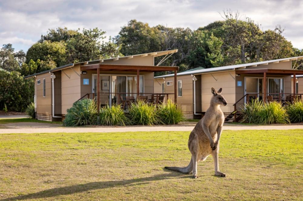 Combine the beachfront with animal encounters at Discovery Parks - Pambula Beach, where kangaroos will hop into the park most evenings.