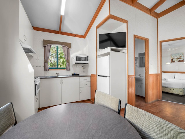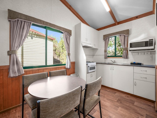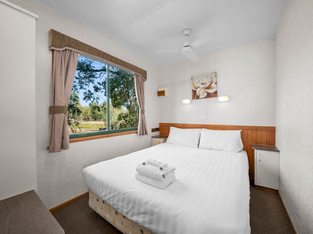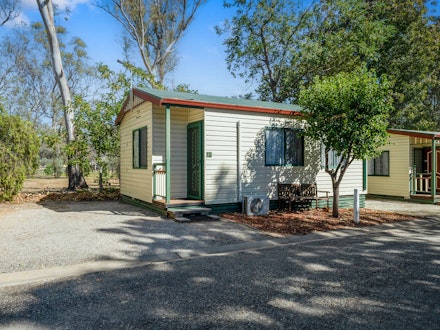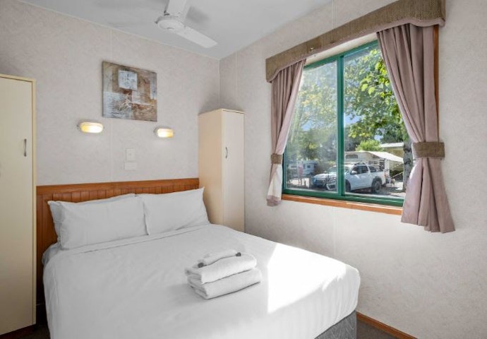 This comfortable cabin is ideal for couples or small families, sleeping up to four guests with a queen bed in one room and a double bed in the other. The air-conditioned interior includes a TV and a compact kitchenette with microwave, stovetop, toaster and kettle. All linen is provided, offering a simple and convenient stay in the heart of Albury.