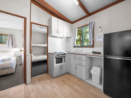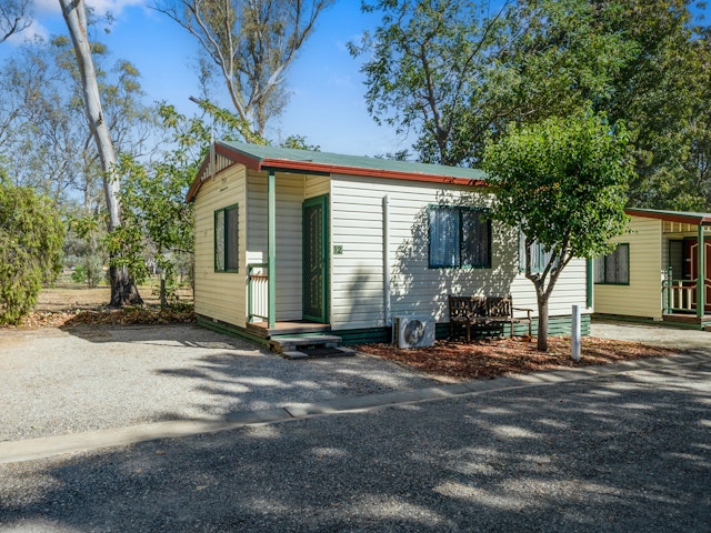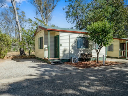 A great choice for small families, this cabin sleeps up to five guests with a double bed in the main bedroom and a bunk with a single over double in the second. The air-conditioned interior includes a TV and a functional kitchenette with microwave, stovetop, toaster and kettle. All linen is included, making this a convenient and comfortable base for your Albury getaway.