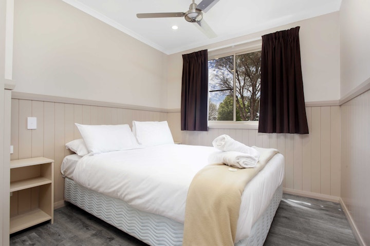 Three bedroom cabin with all cooking facilities, toilet and shower. Full size fridge. TV and reverse-cycle airconditioner. Sleeps eight. Plently of room for the family or a group. Large dining table. Linen provided for all beds. 4 star.