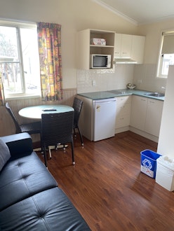 The Standard 2 Bedroom - 4 Berth is perfect for a couple looking to stay a few nights. Fully self contained, the cabin boasts a full sized kitchen including oven and stove.