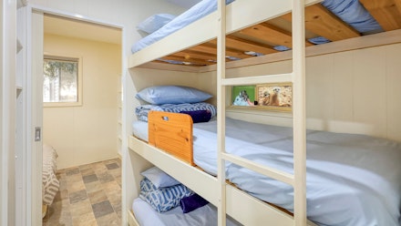 A fantastic cabin for couples or smaller families for an extended stay. This cabin has one bedroom and a set of Tri-Bunks in the hallway.