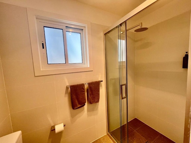 - Kitchenette with bar fridge, microwave, stove, crockery, cutlery, etc.