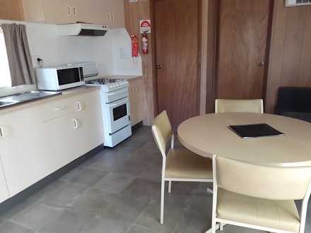 The Standard Units are fully self-contained with a queen-size bed (linen provided), Ensuite, built in robe and single bunk beds (no linen provided). The unit is furnished with a sofa, dining table, chairs and a remote colour TV. A fully equipped kitchen is provided with a fridge, microwave and cooking facilities.