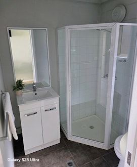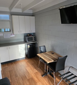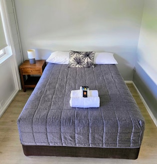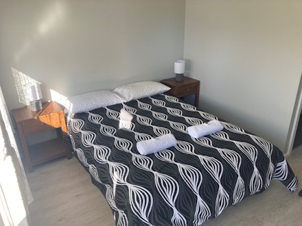 Double bed, Bedside tables, Full Bathroom, 2-person Table, Kettle, Toaster, Large Bar fridge, Microwave, Flat screen TV and Air-conditioner.
