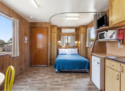 You and your best friend are invited to relax and enjoy the best value pet-friendly accommodation available anywhere in Goulburn. Our Ringer Cabins are ideal for a family or any group on a budget and can sleep up to six guests. Fully equipped, these cabins offer full kitchen facilities, a dining area and double bed in the living area. Our Ringer Cabins allow you to conveniently prepare simple meals, which is great for families with small children or those guests travelling with a pet and on a limited budget.