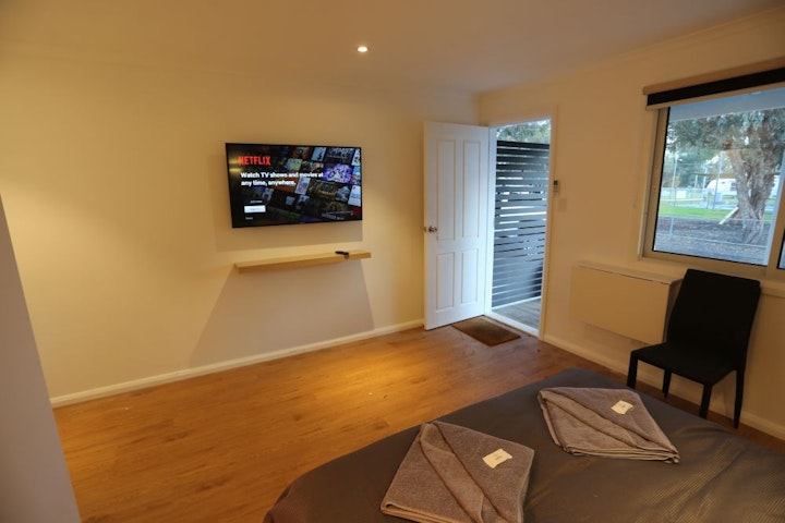 Self contained studio cabins with Wifi. Designed for the budget conscious these cabins have 1x queen bed and are fully self-contained with cooking and bathroom facilities, microwave, 49 Inch Smart TV, electric blanket to bed. Limit 1 vehicle only.