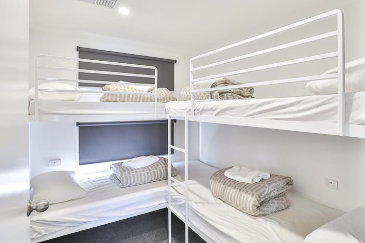 This spacious cabin offers two bedrooms separate from the main living and dining area, ensuring a comfortable and relaxing stay. The master bedroom features a queen bed, while the second bedroom includes two sets of bunk beds. All beds are equipped with sheets, doonas, pillows, and towels. The kitchen is well-appointed with a microwave, full oven, fridge, washing machine, and dishwasher, along with crockery, cutlery, saucepans, a kettle, and a toaster for added convenience. Relax on the sofa or gather at the dining table with chairs, and enjoy entertainment on the television. The internal bathroom includes a shower and toilet, complemented by ducted air conditioning, heating, and a ceiling fan for comfort. Step outside onto the undercover decking, complete with a private BBQ, table, and chairs, offering scenic river views.