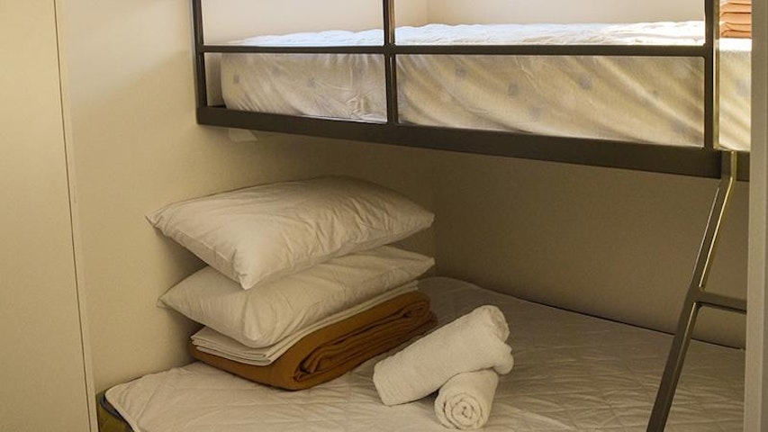 These self contained, open plan Standard Cabins come complete with a furnished deck and BBQ to sit and enjoy a meal together. Features: Sleeps 8 guests. Queen bed in main bedroom and tri-bunks in second and third bedrooms (single over doubles), self contained kitchen with dishwasher and large fridge, and a generous deck with outdoor setting and BBQ. *Photos are indicative only, decor and furniture may vary.