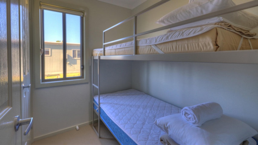 These stunning villas feature incredible views of either Park or Bushlands. They also allow for boat and car parking underneath the villa. Features: Sleeps either 7 or 8. Queen bed in the main bedroom, tri-bunk in the second bedroom and one set of bunks in the third bedroom, open plan kitchen/living area Large deck with an outdoor setting, and a bathroom. Car and boat parking underneath villa Split system air conditioner, flat screen TV, DVD player. *Photos are indicative only, decor and furniture may vary.