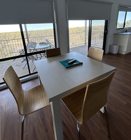 Lakeview 2 bedroom cabin with queen in main and 2 x single beds in 2nd bedroom. Fully self contained. Full wheelchair access to all rooms. A/C in all rooms. Large verandah out the back overlooking the lake. Sleeps 4. NO PETS ALLOWED