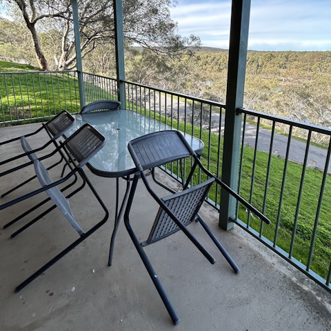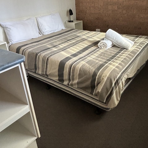 Lakeview 2 bedroom cabin with queen in main, dble bunk style bed with single over top & single bunk bed in 2nd room. Linen provided main bed only, optional for spare beds. A/C in all rooms. Pull out dble sofa, full kitchen & lge verandah out back overlooking lake. NO PETS ALLOWED
