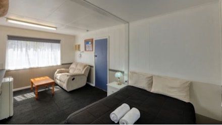Double bed with bedding, cooking facilities, reverse cycle air conditioning, flat screen TV and close to amenities.