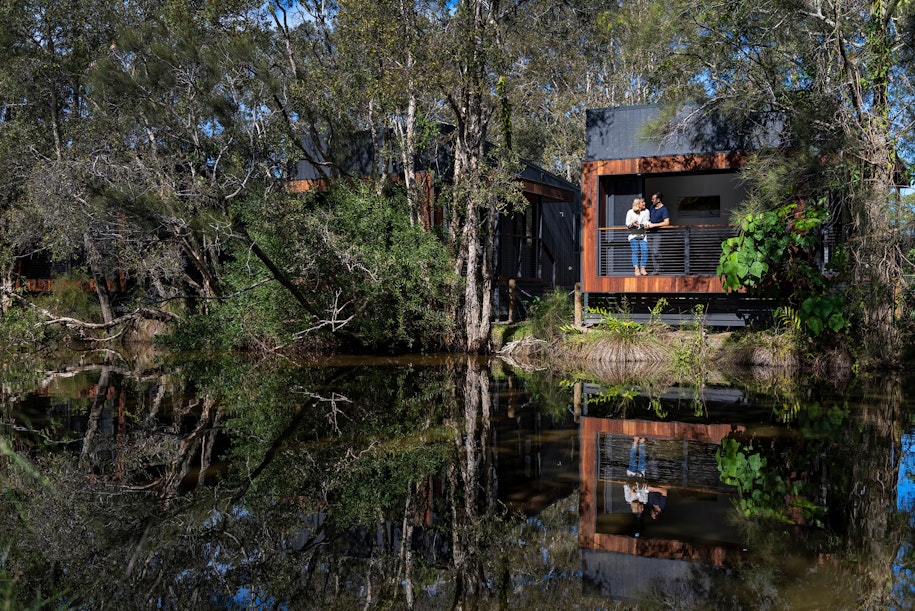There are all kinds of different accommodation choices at Discovery Parks – Byron Bay. If you are looking for cabin accommodation, there are a range of cabins to suit every budget. The Deluxe cabins, available for families or groups of 6 or 4, or even for couples, are modern, spacious and fitted with well-appointed kitchens, comfortable beds and large, private bathrooms. If you’re after that little bit of extra luxury, you can opt for the Superior Lakeside cabin, where you can step out on to the balcony and look directly over the lake in front of you.