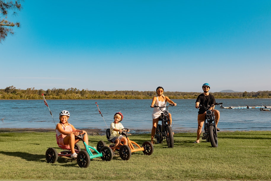 On hot days, cool off in the in-ground swimming pool, which has a toddler-approved wading pool, or the river. The park’s camp kitchen must be among the most scenic in Australia, right on the riverfront with water views. That means you can cook up your BBQ lunch while watching the surface ripple as kayakers paddle past. You’re all set for holiday park conveniences, including a shop, amenities blocks, laundry machines, a dump point, and boat parking. Plus, with the river on one side of the park, and an easy, three-kilometre-long cycling path heading to Nambucca Plaza on the other.