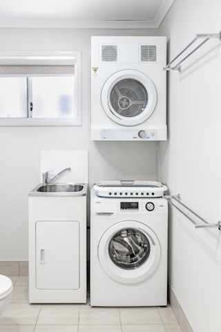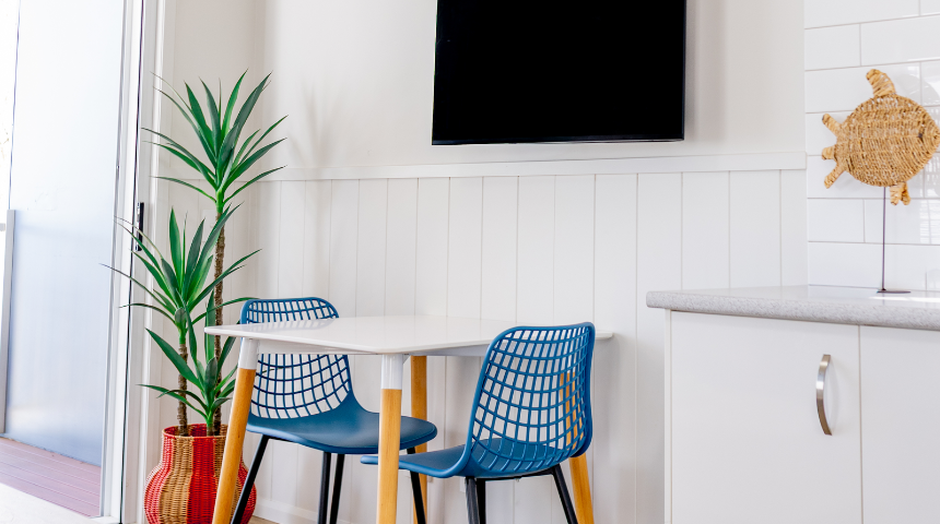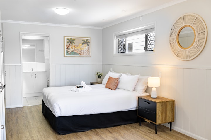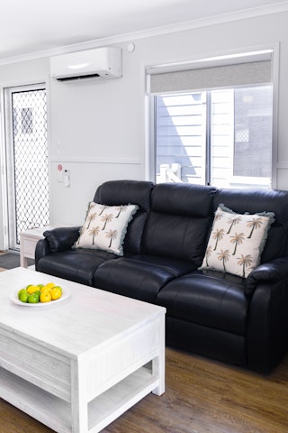 The cabin also has a kitchenette with microwave and twin cooktop, full size fridge, dishwasher, toaster, kettle and pod coffee maker. The spacious bathroom contains a shower, toilet, washing machine, stand alone dryer and washtub. The dining area contains a 3 piece dining setting, 3 seater leather recliner couch and 40″ flat screen TV.