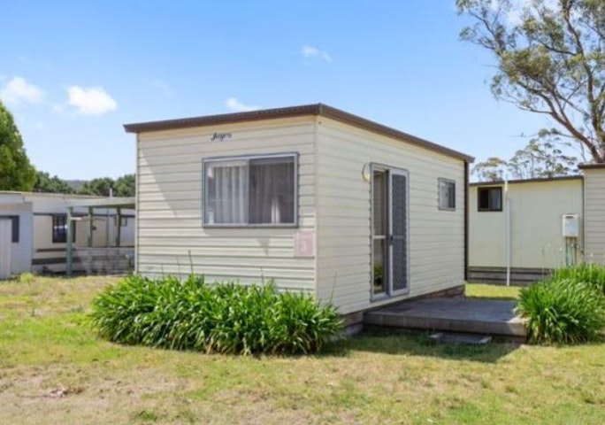 This pet-friendly studio sleeps up to 4 guests with a double bed and a set of single bunks. It includes an ensuite toilet, with showers located nearby at the amenities block. Linen is supplied for all beds. While there’s no kitchen or air-conditioning, this simple cabin offers a convenient base to enjoy the park surroundings.