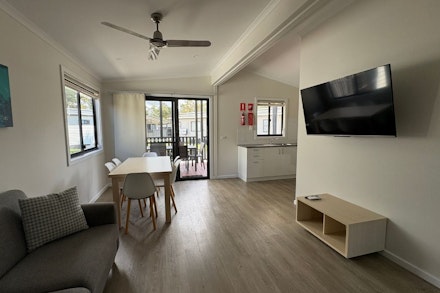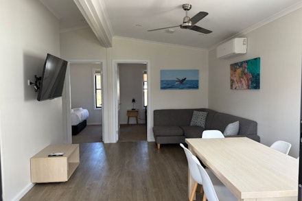 The Superior Cabin has two bedrooms with a lounge and dining area, ensuite and a full kitchen.