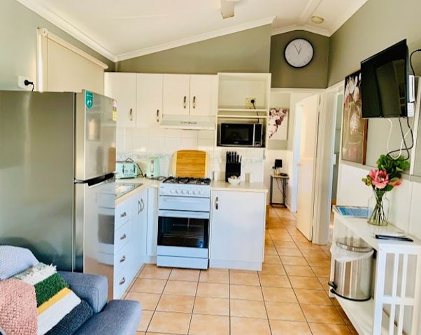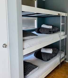 Soak up the sea breeze in this two-bedroom cabin featuring a private balcony. Sleeping up to four with a queen bed and bunk bed, it includes a full kitchen with gas oven, private bathroom, dining area, TV, and reverse-cycle air conditioning. A relaxed and spacious stay near the shoreline.