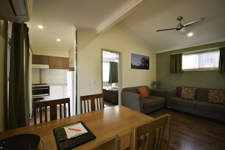 Looking for a holiday with a few of life’s luxuries? Our Two Bedroom Queen Ensuites give you that extra bit of comfort. Each cabin has a well-equipped kitchen, its own bathroom, a lounge for relaxing with the TV, plus a verandah that’s perfect for an afternoon cuppa.