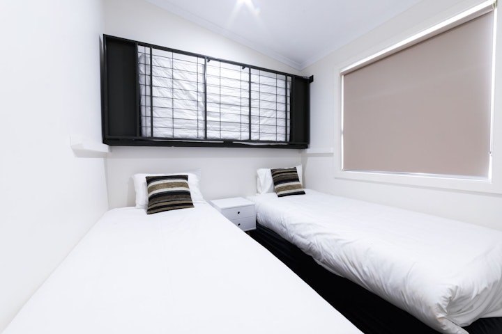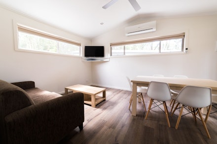 The Westerner Henty Villa, with a large deck and private BBQ offering stunning river views, can sleep up to seven people. It features a queen bed in the main bedroom, and two king single beds (convertible to a king bed on request) with a fold-up king single bunk in the second bedroom, plus a sofa bed in the living area.