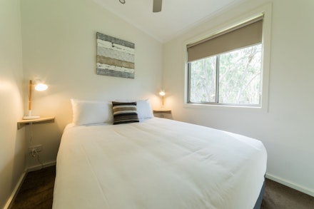 Amenities include a separate bathroom and toilet, large living area, split system air conditioning/heating, ceiling fans, a full-size oven, electric blanket on the main bed, fully made-up beds, dishwasher, microwave, iron/board, hairdryer, TV and free WiFi.