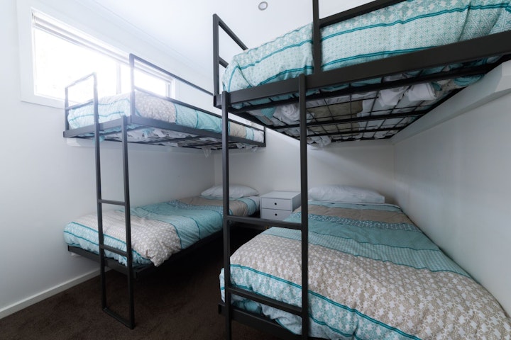 The Westerner Riverview Villa features a large deck with a private BBQ and stunning river views. It can sleep up to eight people, with a queen bed in the main bedroom, four single bunk beds in the second bedroom, and a sofa bed in the living area.