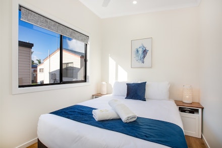 This modern and stylish 1 bedroom villa has a wide verandah, a spacious living/dining area, a fully equipped kitchen with convection microwave, upgraded toaster and kettle, coffee pod machine, bathroom facilities and undercover parking for 1 vehicle and space for a 2nd vehicle. The villa accommodates up to 2 people. Furnishings include a remote control smart TV, reverse cycle air-conditioning, ceiling fans, and hair dryer. Pricing includes linen. Pets are not allowed in our villas.