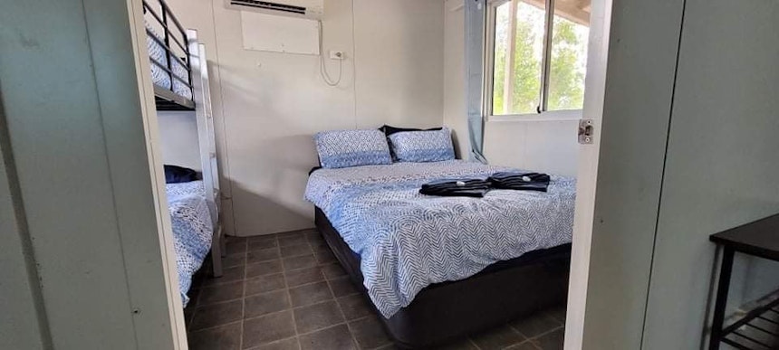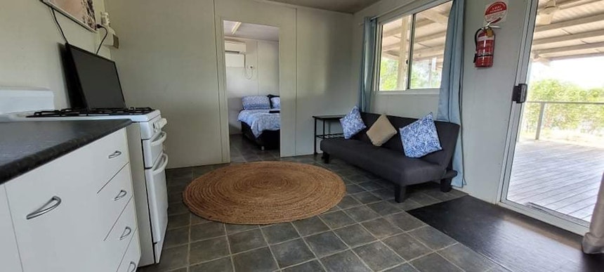 This two-bedroom lakeside house offers stunning lake views and a large deck perfect for relaxing or entertaining. The main bedroom features a queen bed, while the second bedroom includes a queen bed and bunks, ideal for families or groups. Enjoy the convenience of a full kitchen, spacious bathroom, large-screen TV, washing machine, and BBQ. Located in a private area adjacent to the park, this home provides a peaceful lakeside escape.
