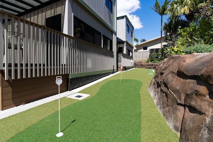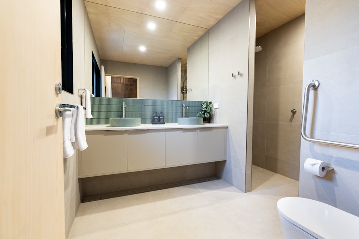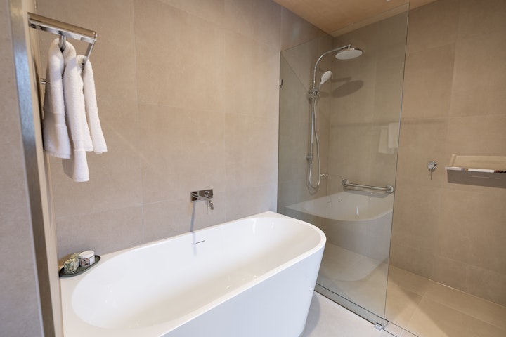 Upstairs, guests will find two additional bedrooms designed with both style and practicality in mind. The master bedroom offers a king bed with private ensuite, while the second bedroom includes two double beds and its own ensuite with bath, shower and toilet. This level also features a private balcony – the perfect place to relax and enjoy the village surrounds.