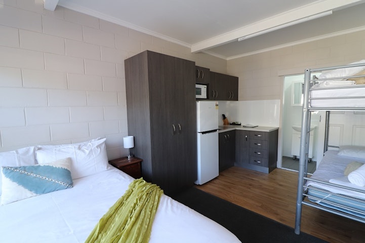 The reverse cycle airconditioned self-contained Standard Studios are light and bright throughout with an inviting ambience, they come complete with a new bathroom, modern kitchenette, appliances, luxury pillow top double bed, and bunk beds. These studios are a popular option for affordable holiday makers and are ideally suited to couples or small families, accommodating up to 4 people.