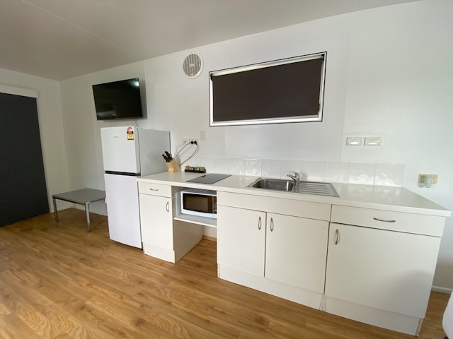 - Convenient Kitchenette with stove top, microwave and fridge: Prepare light meals and snacks with ease.