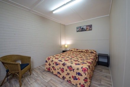 Private Room only with queen bed Rate is for 2 persons (sleeps maximum 4 persons on request, cannot be guaranteed and extra charges apply for additional guests) Bathroom facilities are park shared amenities Free use of all park facilities including Camp Kitchen which features Pizza Oven and Recreation Room Relax in the Therapeutic Heated Mineral Pool & Spa 4 HOURS FREE WI-FI per day! Plus FREE DVD movie Hire. Ideal for the Economy traveller.