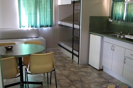 Self Contained and air-conditioned Ensuite Cabin with 1 double bed and 3 single bunks and a bar fridge