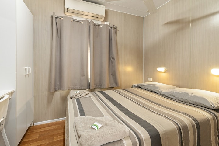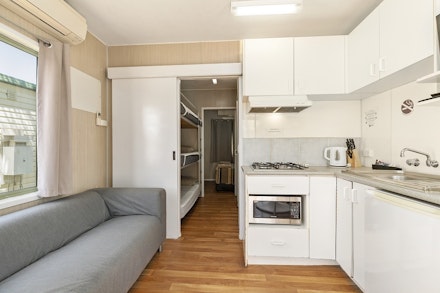 These 1 Bedroom Cabins consist of 1 x Double Bed and 3 x Bunks. All beds are supplied with linen and towels. Cabins have cooking facilities, such as microwave, toaster, kettle and gas cook tops. They have their own shower and toilet.