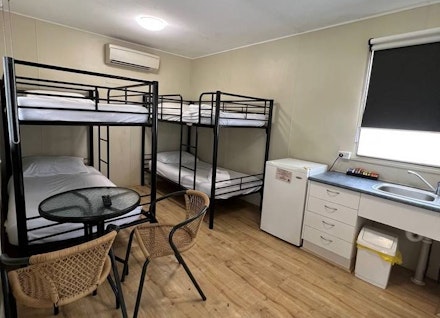 Family Unit 2 bedroom Family unit consists of 1 x Queen, 1 x single & 2 bunks. Family Unit have basic cooking facilities such as microwave, toaster, kettle and electric hot plate.All beds supplied with Linen and Towels. Family unit has a shower and toilet.