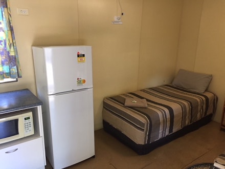 Open Plan Unit consists of 1 x Double Bed Basic cooking facilities such as microwave, toaster, kettle and electric cook top. Dog permitted to stay inside but not on any park bed. BYO doggy bed. Units have their own shower and toilet.