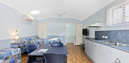 Our Tropical Villas are modern units which are open plan with kitchen, veranda, air-conditioning, overhead fans, TV, DVD and Foxtel. Tropical Villas have a queen bed, single bed & trundle bed. Parking for one car is available beside the units. NO PETS Allowed.