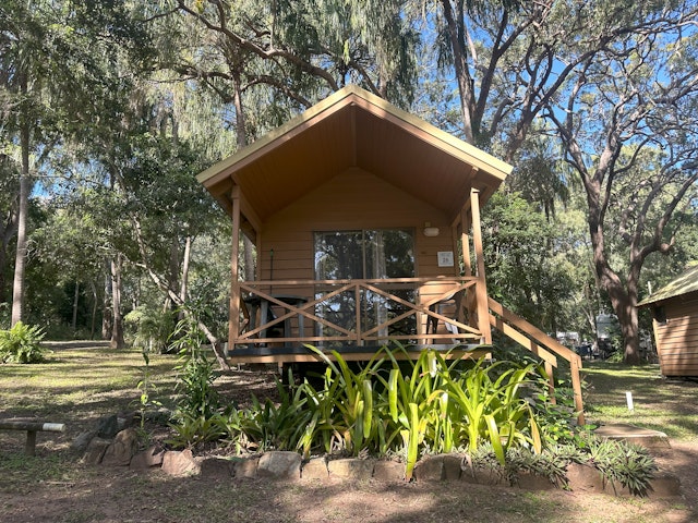 The standard cabins at Captain Cook Holiday Village sleeps a family up to five. They include a double bed and triple bunks (designed for children) in an open-plan cabin. Kitchen facilities include a twin element to cook on, a microwave, jug, small bar fridge, toaster, crockery, cutlery, and cooking implements. There is a 40-inch smart TVs for your enjoyment and a bathroom with shower and toilet. A ceiling fan and reverse cycle air conditioning is in the standard cabin for your comfort. All standard cabins have an outdoor setting on the veranda to enjoy a friendly visit in the Queensland sunshine.