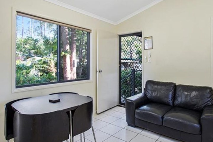 Unwind in this comfortable two-bedroom cabin, ideal for up to four guests. The main bedroom features a queen bed, while the second offers single bunks—great for families. A well-equipped kitchen, cosy living area with TV, and air conditioning ensure a relaxed stay. Enjoy quiet mornings or evenings on your private balcony.