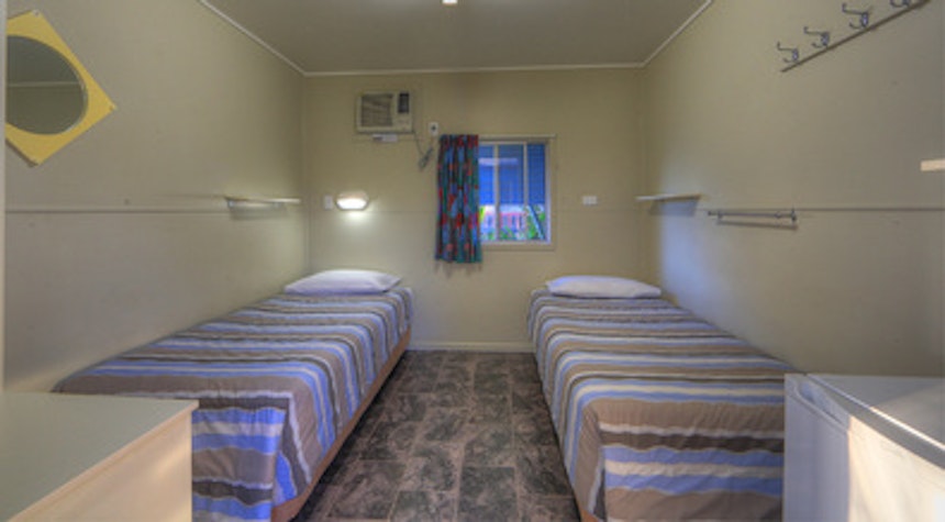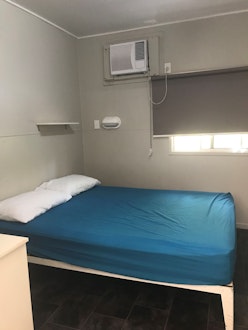Roomette - Double rooms are very popular with backpackers, allowing more privacy than the 'dormitory' style of accommodation. Also perfect for Workers or Fishermen. Each room is equipped with a double bed, bed linen, air conditioning, wardrobe and drawers, small bar fridge and a flat screen TV. Roomettes share kitchen and bathroom facilities. Also known as "luxury camping for fishermen" they are ideal when you are looking for a cheap place to bunk down for the night. Ask about our Backpackers Special for long-term stays. For those wishing to seek local farm work, we will assist in finding work for you and with transport to and from work.