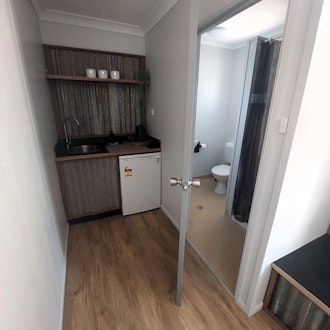 Each ensuite room features a queen bed, a fridge, kettle, and a bathroom with toilet and shower. Additionally, there's a TV with satellite channels. While there's no toaster or cooking facilities in the rooms, guests have access to the camp kitchen. Linen, towels, and soap are provided in all rooms. Ensuited rooms include complimentary coffee and tea.