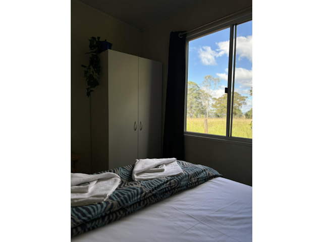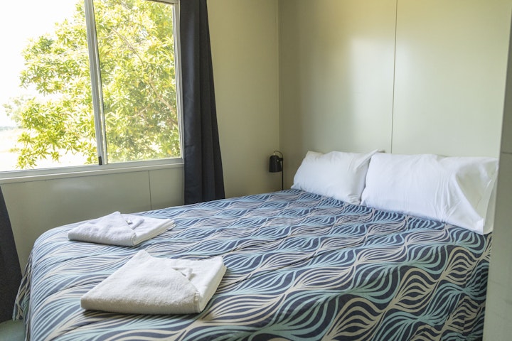 Each self-contained cabin includes a double bed, a king single bed, an ensuite, and reverse-cycle air conditioning. Linen is provided for a hassle-free stay.