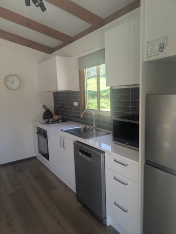 This gorgeous cottage sleeps 2 people and includes 1 queen bed with electric blanket, as well as featuring a 2 person corner spa bath. Separate living and kitchen area includes seating, microwave, cook top, reverse cycle air-conditioning and TV.
