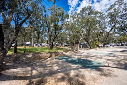 Most of our powered sites are shady and surrounded by beautiful protected River Red Gum and Grey Box Gum trees. Big-rig sites also available.