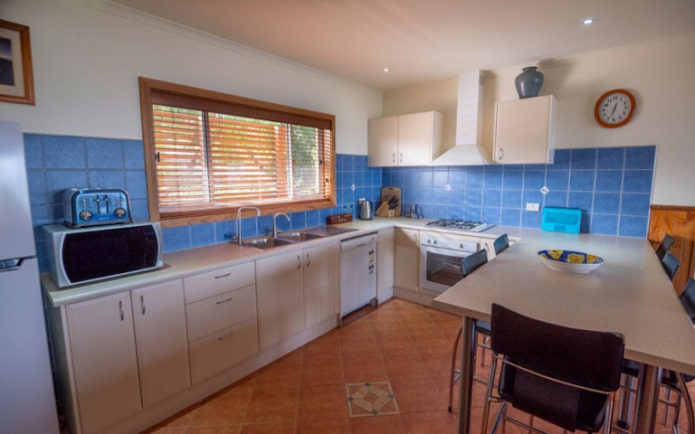 With a private laundry including washing machine and dryer, as well as a fully equipped kitchen, including a dishwasher, fridge, oven and stovetop, microwave and appliances, you'll have everything you need for your holiday.