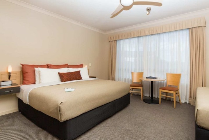 A well-appointed resort room featuring a king size bed and ensuite bathroom with an intimate spa bath. Features include a flat screen TV, tea/coffee making facilities with room service available on request.