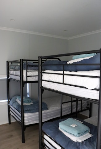 Each cabin includes a main bedroom with a queen-sized bed and a separate bedroom with two sets of double bunks.