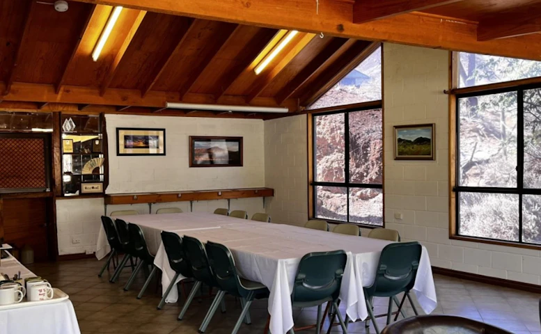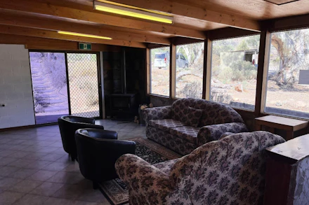 The Lodge Features 4 Bedrooms, With 1 Double and 2 Single Bunk Beds Per Room (Sleeping A Minimum of 10 up to 24 guests, or more if required). All 4 Bedrooms Are Private and Open Up To A Spacious Lounge/Dining Area With A Wood Heater (Firewood Additional Fee), Air-Conditioner, Tables and Chairs. This Large Area Is The Perfect Space For Group Meals, Games, Movie Nights and Indoor Activities, and Is Solely Reserved For Lodge Guests Only. A Large Flat Plate BBQ, Kitchen Sink, Shared Toilets & Showers Can Be Located A Short Distance Away. A Communal Kitchen Is Available For Lodge Guest Use, A Short Walk From The Building. Alternatively, Our Fully Equipped Commercial Kitchen (Next to the Bunkhouse) Can Be Hired For An Additional $550 Per Day. Parking To the Front of the Cabin for Multiple Vehicles.