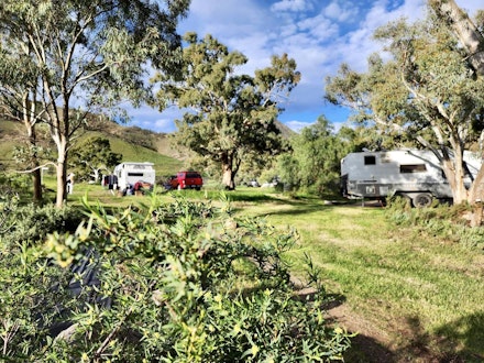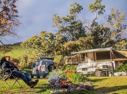 We have multiple bush camping locations (some powered) spread up the creek all individually suitable for groups up to 12 caravans. All of these sites have fresh drinkable spring water, fire rings and flushing toilets within 100 metres walk.